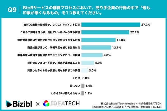 IDEATECHとBizibl Technologiesが2026年2月に共同で実施した「BtoB購買プロセスにおける「7つの大罪」実態調査」(n=438)では、以下のような課題が明らかになりました。