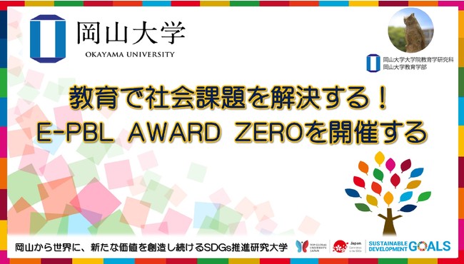 国立大学法人岡山大学(本部:岡山市北区、学長:槇野博史)大学院教育学研究科教育科学専攻が中心となり、2022年3月28日、高校生を対象にE-PBL AWARD ZERO(教育(Education)を中心とした課題探究型の学び(Project Based Learning))を実施しました。県内の高校生から教育でさまざまな社会課題を解決すべく取り組んできた探究型学習の成果が報告され、情報交換が行われました。