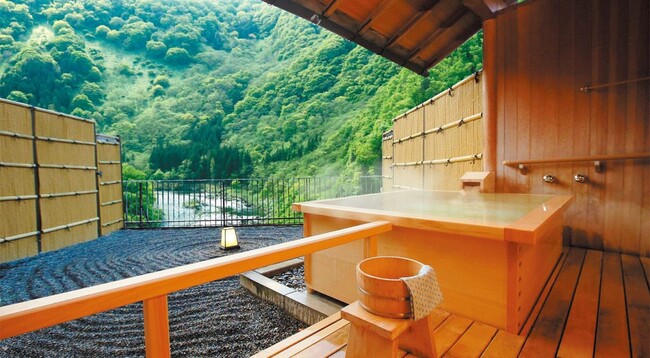 すべての客室から阿賀川を望む絶景を望めるお宿。客室の露天風呂や大浴場で芦ノ牧温泉を堪能できます。