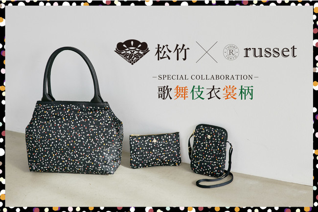 株式会社パル(本社:大阪府大阪市中央区道修町3-6-1 代表取締役社長 松尾勇)が展開するレディースバッグブランド「russet(ラシット)」は、松竹株式会社(本社:東京都中央区築地4-1-1 代表取締役社長 迫本 淳一)とコラボレーションした、歌舞伎衣裳柄シリーズアイテムを発売いたします。