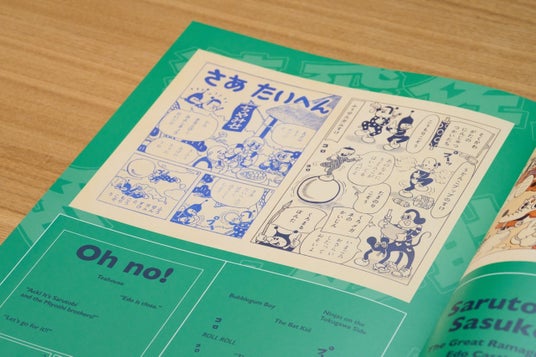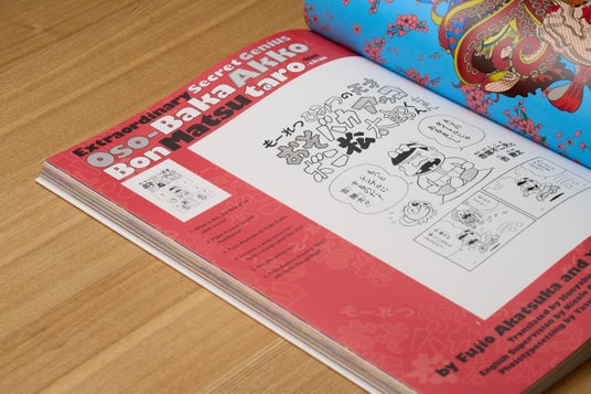 サイズはB4判。B5判で出版された「おもしろブック」の連載、山川惣治『少年王者』と杉浦茂『猿飛佐助』を原寸大で再録。また赤塚不二夫×吉勝太による、赤塚マンガの主要キャラ総出演の新作マンガを掲載。英文を併記し、海外の読者にもそのおもしろさが伝わるよう努めました。