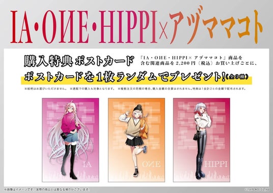 「IA・OИE・HIPPI×アヅママコト」商品を含む関連商品を、2,200円(税込)お買い上げごとにポストカード(全3種)をランダムで1枚プレゼント!