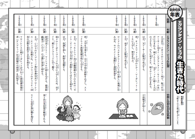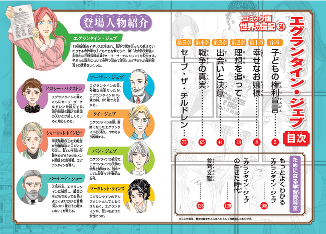 また、エグランタイン・ジェブという女性の生き方を理解する助けとなる記事ページと、年表も充実。原作者である村上リコ氏が執筆した記事では、当時の社会情勢やボランティア活動、ジェブを支えた人物について解説。また、年表で生涯を簡潔にわかりやすく紹介しています。