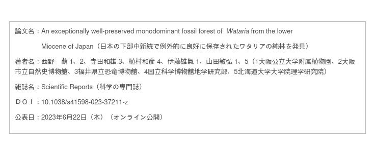 ・岐阜県美濃加茂市の約1900万年前の地層から、オベチェだけから構成される化石林を発見。