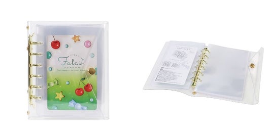 ぷっくりシールをきれいにデコレーションしてコレクションできるシールバインダー。透明表紙と透明台紙を採用し、デコしたシールの魅力をそのまま楽しめます。厚みのあるシールにも対応する25mm径の大きめ6穴リングで、出し入れや差し替えも簡単。カードや写真を挟めるポケット仕様の台紙や、チャームを付けられるチェーンホール付きでカスタマイズも自在。
