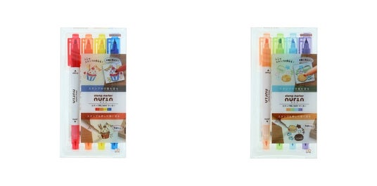 スタンプを好きな色で自由に彩れる2WAYマーカー。従来のインクパッドでは難しかった色分け表現が可能で、滲みにくいインクにより美しくスタンプを押せます。印面に密着しやすい平筆は細部までスムーズに着色でき、細筆は繊細なペイントにも最適。どちらのペン先もスタンプ用・色塗り用の両方に使え、表現の幅が広がるアイテムです。