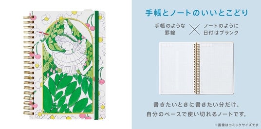 日々の記録を手軽に、無理なく自分のペースで続けられるよう開発されたノート。手なじみの良いコミックサイズで、日付欄は空欄仕様のため、書きたいと思ったその日から気軽に始められます。裏抜けしにくい白い紙を採用し、ペンやシールも快適に使用可能。両面2段のサイドインポケット付きで紙ものの収納にも便利。定規や栞として使える下敷きも付属しています。