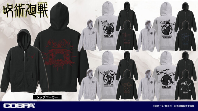 ・ジップパーカー 渋谷事変ver.(虎杖悠仁/伏黒恵/釘崎野薔薇/五条悟、¥7,700税込)