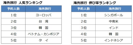 また、前年比の伸び率では、1位 沖縄、2位 九州、3位 北陸・甲信越となりました。沖縄は、個人旅行を中心に需要が増加しているほか、離島の周遊旅行も人気を集めています。北陸・甲信越は、予約数、伸び率ともに上位にランクインしました。同エリアでは、この時期限定の絶景「立山黒部アルペンルート 雪の大谷ウォーク」を目的とした旅行が好調に推移しています。