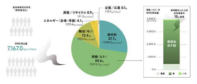 総来場者約650名(関係者含む)規模の1日開催のトークイベントから排出されたGHG(温室効果ガス)の排出量は、「7,167kg-CO2eq」でした。