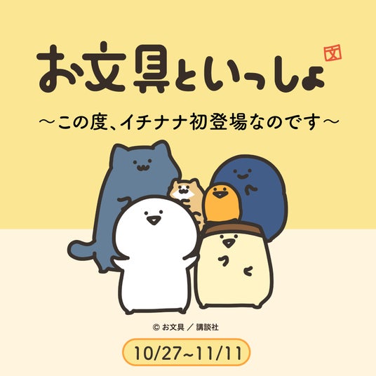 「お文具といっしょ」は、お文具さんとその仲間たちの日常を綴った動画や漫画がSNSで大人気の癒し系キャラクターです。2018年よりX(旧Twitter)にて4コマ漫画の投稿をスタートし、2019年に書籍化、2020年にはYouTubeでのアニメーション作品の投稿もスタート。各種SNSの総フォロワー数は脅威の100万人超えなど幅広いファン層から支持されています。