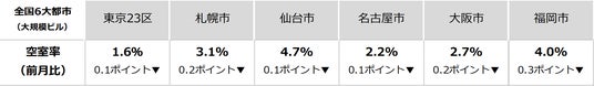 空室率・潜在空室率 前月からほぼ横ばい 引き続き低下傾向