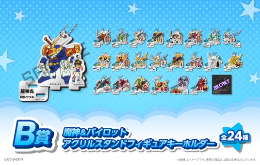 B賞の「魔神&パイロット アクリルスタンドフィギュアキーホルダー」は並べて飾ると圧巻の見栄えです。