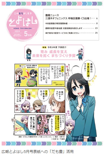 豊橋市から市民への様々なお知らせが載る広報とよはしを、一人でも多くの方が手に取り開くきっかけになったり、市の魅力を広く伝え親しみを持ってもらうべく、掲載がスタートしました。
