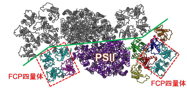 「FCPヘテロ四量体を含む珪藻PSII-FCPII超複合体の構造基盤」