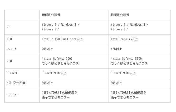 ※上記オープンβテスト基準動作環境は、正式サービス時の動作環境と異なる場合があります。