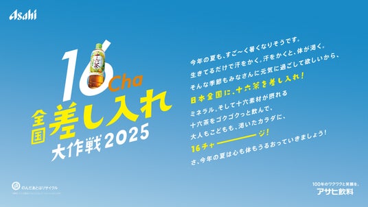 参加方法や、詳細なキャンペーン情報については、特設サイト(https://www.asahiinryo.co.jp/entertainment/campaign/16cha/250516-2507/)よりご確認ください。