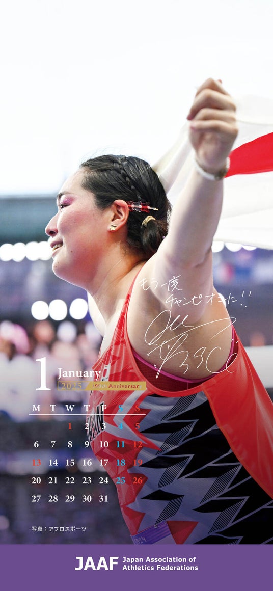 1月のカレンダーは 2024アスリート・オブ・ザ・イヤー に輝いた 北口榛花選手!
