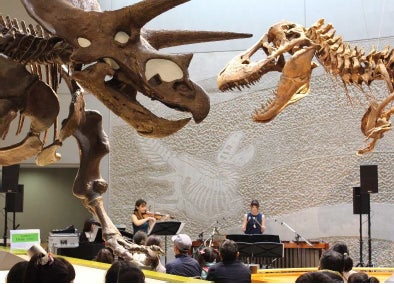 ティラノサウルスとトリケラトプスの骨格標本の足元で“生演奏を聴く”という 豊橋市自然史博物館ならではのコンサートをぜひご堪能ください。