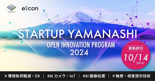 日本最大級のオープンイノベーションプラットフォーム「AUBA(アウバ)」を運営する株式会社eiicon(エイコン 本社所在地:東京都文京区後楽、代表取締役社長:中村 亜由子、以下 eiicon)は、2024年9月2日(水)より、山梨県とともに、県内企業が全国のスタートアップとの共創を目指すオープンイノベーションプログラム『STARTUP YAMANASHI OPEN INNOVATION PROGRAM 2024(以下、本プログラム)』を始動。