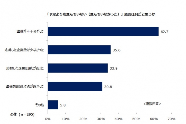 「予定よりも進んでいない」原因は、「準備が不十分だった」62.7%