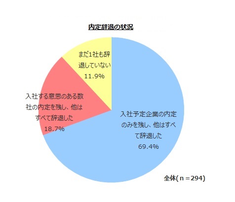 「入社予定企業の内定のみを残し、他はすべて辞退した」69.4%