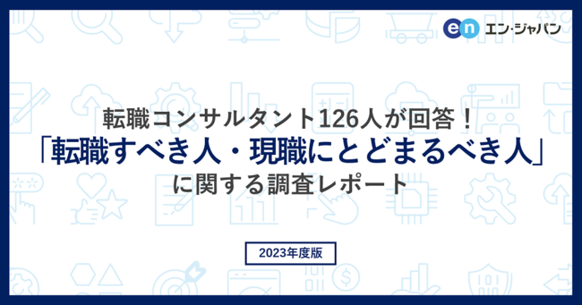 エン・ジャパン株式会社(本社:東京都新宿区、代表取締役社長:鈴木孝二)が運営するミドル世代のための転職サイト『ミドルの転職』(https://mid-tenshoku.com/)上で、サイトを利用している人材紹介サービスの転職コンサルタントに「転職すべき人・現職にとどまるべき人」についてアンケートを行ない、126名から回答を得ました。以下、概要をご報告します。