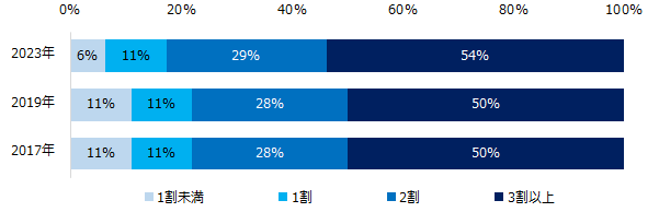転職コンサルタントに「面談を行なった方のうち、転職せずに現職にとどまるべきと思う方は全体の何割ほどですか」と質問したところ、54%が「3割以上」と回答。2019年の同調査と比較すると、4ポイントアップしました。