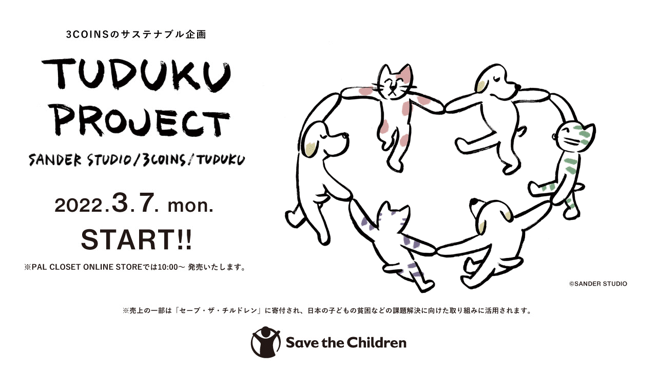 あなたの“ちょっと幸せ”をお手伝いする雑貨ブランド「3COINS」(スリーコインズ)では、サステナブル企画「TU DU KU(つづく)PROJECT」より、身近な暮らしを通して地球環境などを考える新商品を3月7日(月)より販売開始します。