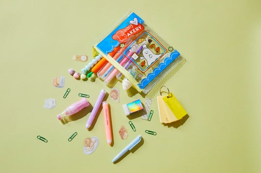 ふろくイメージ画像 ※クリアポーチとミニペン(画像中央下・ブルー)以外の付属品はつきません