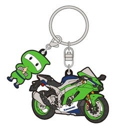 Kawasaki人気モデルとキャラクターのダブルチャームのラバーキーホルダー