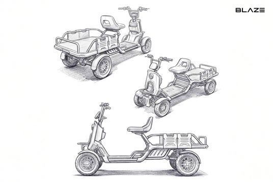 これまで取り扱ってきた特定小型原付はいずれも2輪モデルであり、今回の新商品は今まで蓄積してきた電動モビリティ開発の技術・知見を基に企画し、ブレイズの特定小型原付では初めての4輪モデルとなります。