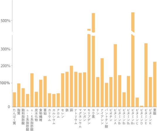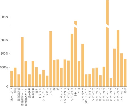 ※栄養素等表示基準値(18才以上、基準熱量2,200kcal)に基づき、1日分の基準値の1/3を100とした場合