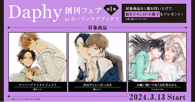 株式会社TORICO(本社:東京都千代田区、代表取締役社長:安藤拓郎)が運営するホーリンラブブックスにて、宙出版『Daphy創刊フェア 第一弾』を開催いたします。