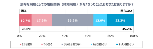 法的な制度としての婚姻関係(結婚制度)がなくなったら?「困らない」18~29歳独身男女の3人に1人