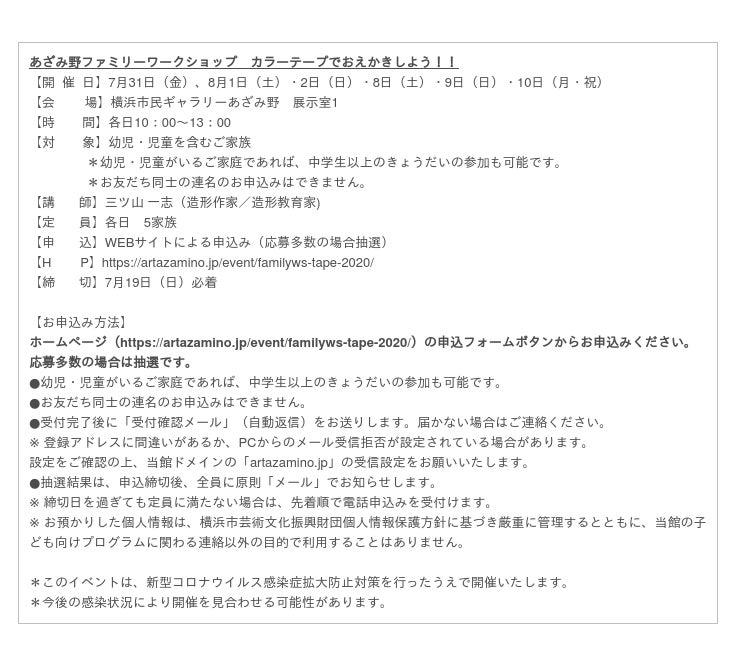 【あざみ野ファミリーワークショップ カラーテープでおえかきしよう!!】