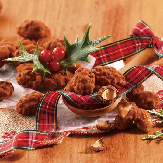 ドイツのクリスマスマーケットで親しまれている、素朴な「焼きアーモンド」をロイズ流にアレンジ。ローストしキャンディング(飴がけ)した、カリッとした食感のアーモンドをミルクチョコレートで包み、ココアパウダーをまぶしました。チョコレートと香ばしいアーモンドのバランスが、次々と気軽につまみたくなるおいしさです。