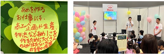 ご来場の児童からは、「飴を作るお仕事にも、商品企画や生産、物流などたくさんの人が働いている事を知りました」と嬉しい言葉をいただきました。また、講師を務めたカンロ社員も、「参加していただいたお子さまのクイズの問題をしっかり聞いて手を挙げている姿に、色々な仕事があることに興味を持っていただけたと感じることができて嬉しかったです」と話し、普段の業務とは違った満足感を得られたようでした。