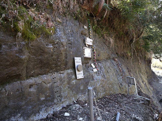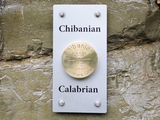 ジェフユナイテッド市原・千葉のホームタウンである市原市の養老川流域の加茂地区田淵に国指定天然記念物の地層があります。77万4千年から12万9千年前を示す地層で、地磁気の逆転が起こった記録が読み取れます。2020年、国際地質科学連合がこの地層を新生代第四紀中期更新世を代表する地層として、ラテン語で千葉時代を意味する「チバニアン」と名付け、地質年代境界の国際基準値(GSSP)として認定。その証明である「ゴールデンスパイク」のプレートが設置されました。