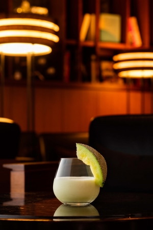 「エメラルドマティーニ」はスタンダードカクテルの中でも人気のマティーニをアレンジし、清涼感のあるジンとマスクメロンの織りなす香りを堪能できる優美な一杯。フレッシュ果汁とアルコールが絶妙なバランスで一つになります。