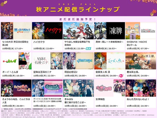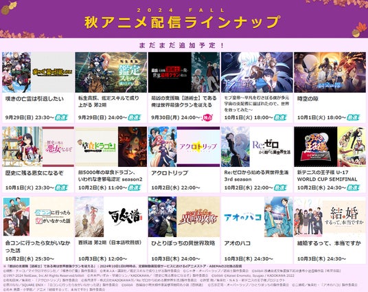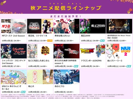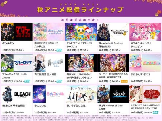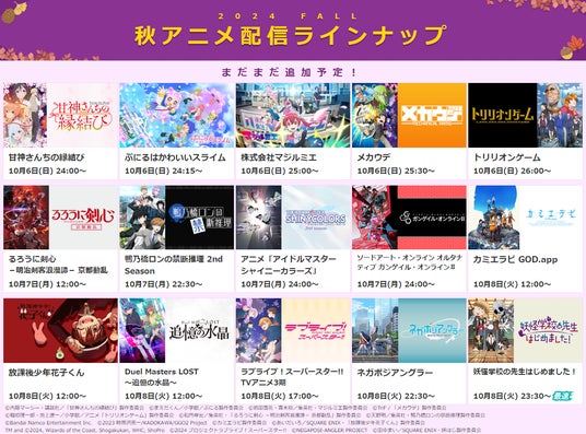※詳細は次項目「■2024秋アニメ・配信決定一覧」 及び ラインナップページをご確認ください