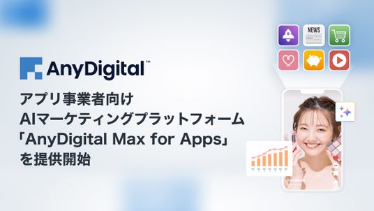 AnyMind Group株式会社(読み:エニーマインドグループ、代表取締役CEO:十河 宏輔、以下「当社」)は、デジタルマーケティングプラットフォーム「AnyDigital」を基盤にしたアプリ事業者向けAIマーケティングプラットフォーム「AnyDigital Max for Apps」の提供を開始しました。