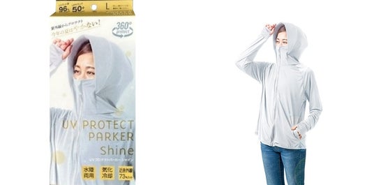 独自開発の暑さ対策生地を使用した涼感パーカー 。絶対に日焼けしたくない方へ向けた1枚で上半身をオールカバーできる設計が特徴です。髪を通せるホールや、手袋代わりになる親指ホール、操作しやすいファスナー紐など細部まで充実 。さらに、座った際も生地の巻き込みがなくスッキリとしたシルエットを保ち、機能性と快適さを徹底追求しています 。