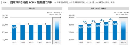 物価(CPI)連動型の賃貸借契約は、30年にわたって物価水準が横ばいだった日本では馴染みの薄い形式だが、インフレが定着している海外では一般的に用いられている。日本の商習慣が国際的には特殊だったと言えよう。