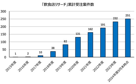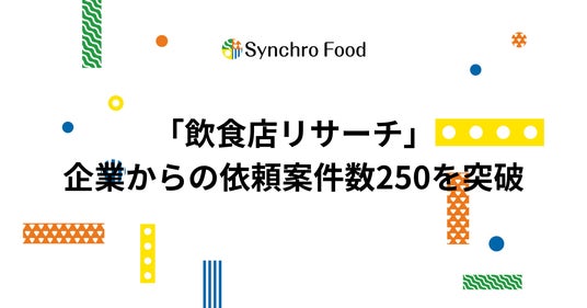 飲食店の出店・開業・運営に役立つサービスをワンストップで支援するプラットフォーム「飲食店ドットコム」を運営する株式会社シンクロ・フード(本社:東京都渋谷区、代表取締役:藤代真一、東証プライム市場:3963)は、飲食店に特化したマーケティング調査「飲食店リサーチ」の企業からの受注案件数が250を突破しました。