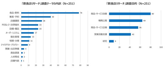 また、調査テーマで圧倒的に多いのは、食品・飲料に関するマーケティングですが、集客・予約システムや店舗運営、決済端末など、トレンドやニーズに沿った多様なテーマに対応。
