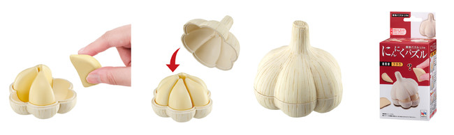 第一弾は「にんにく」と「うに」の2種で、ツヤや凹凸が本物さながらに再現された造形美と、形状の違いを見極めながら“正しい位置に入れないとふたが閉まらない” 絶妙な難しさが特徴の立体パズルをお楽しみいただけます。