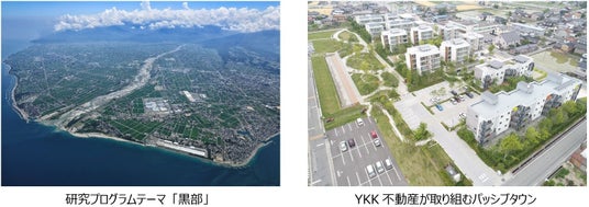 「黒部」では3,000m級の立山連峰から水深1,000m以上の富山湾まで、高低差4,000mの地形が生み出すダイナミックな水資源を中心に、農業や工業、あるいはYKK不動産が取り組む風や地下水などの自然エネルギーを活用したローエネルギーな「まちづくり・住まいづくり」の「パッシブタウン」(※)などが研究の対象になる予定です。
