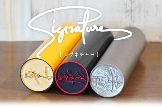 『signature(シグネチャー)』は、「他の誰とも被らないオリジナリティのある印鑑は作れませんか?」というSNSから届いた声から企画。5,000件を超える制作実績を誇るサイン作家とコラボした世界に一つだけの印鑑作成サービスです。
