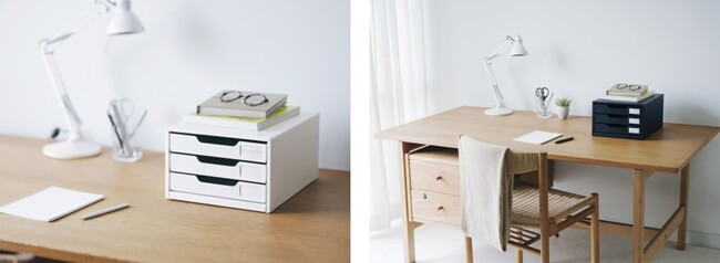 オフィスでおなじみのレターケース、デスクトレー、ストックボックスが家庭向けデザインに